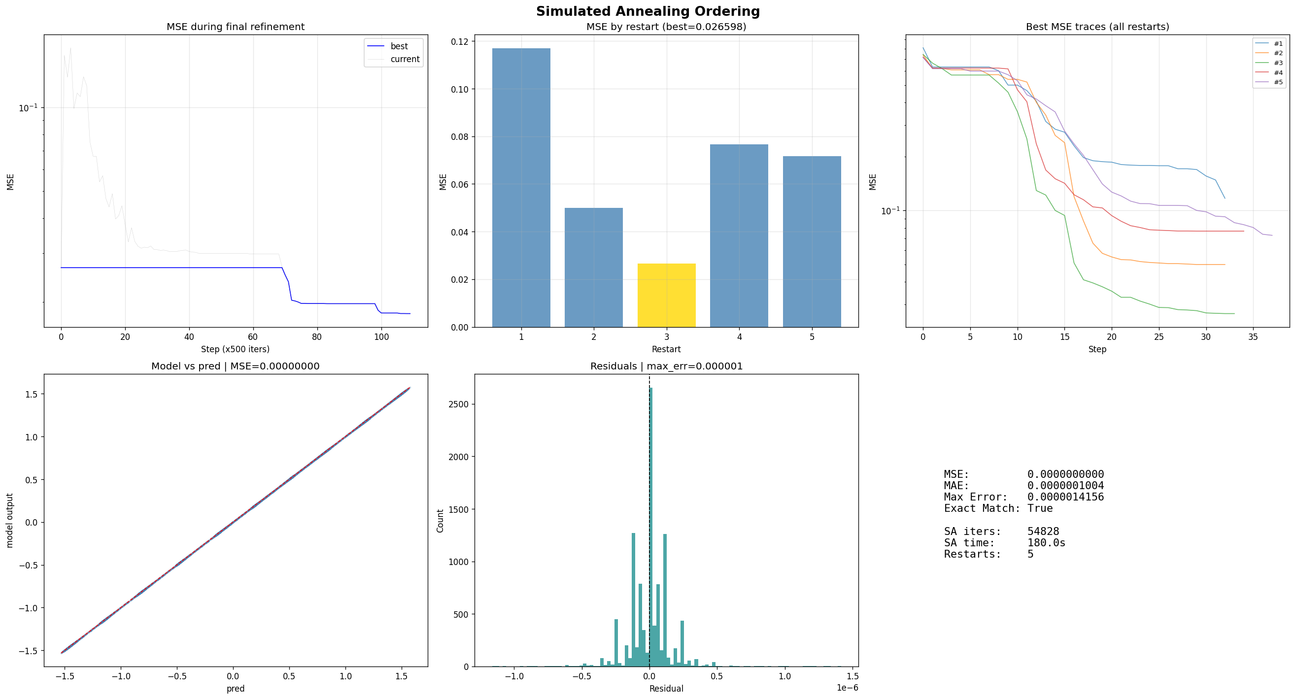 The final solution recovered the exact model permutation. In practice, the reconstructed network behaved like the original instead of merely approximating it.
